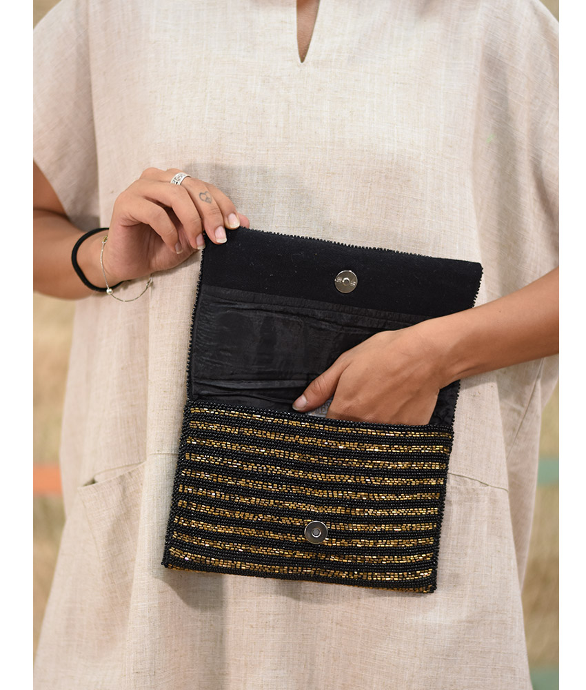 Black & Gold Beaded Clutch – Hoopoe