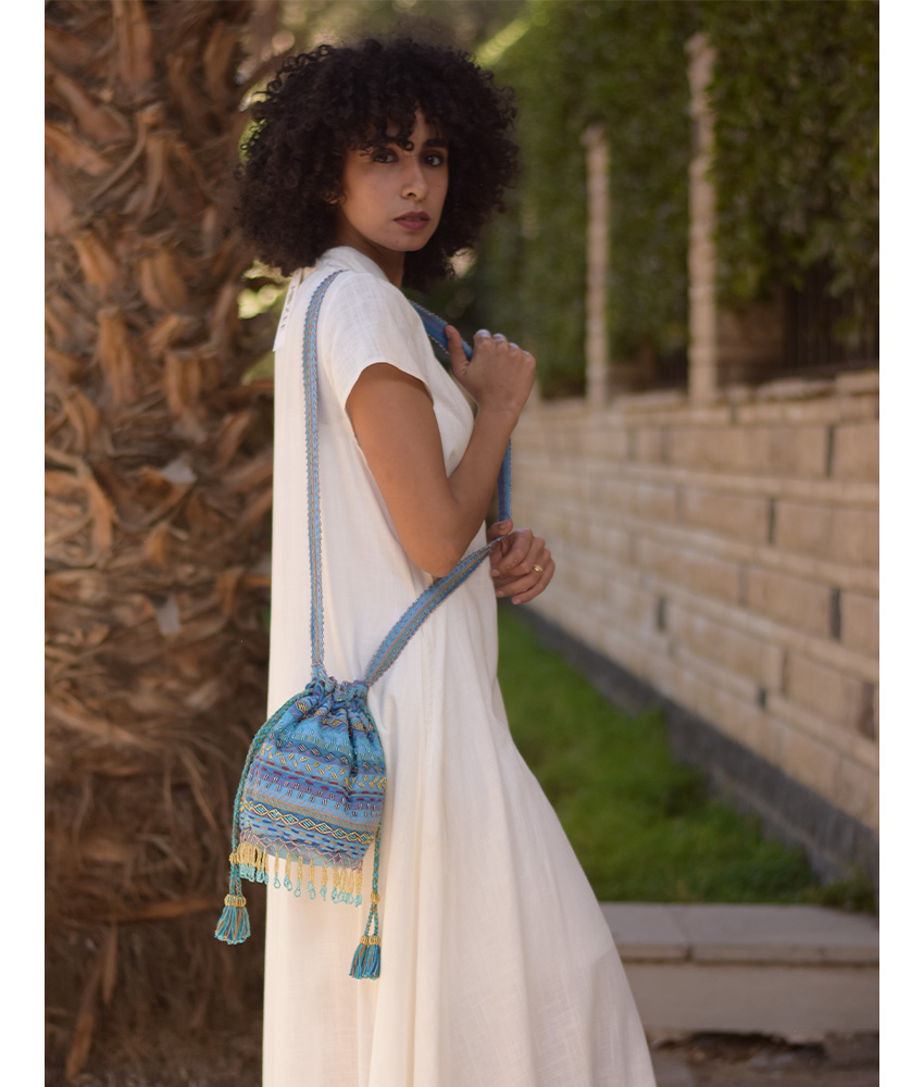 Blue Beaded Saint Catherine Embroidered Cross Bag – This lovely bag is richly decorated with beads, embroideries and fringes or tassels by Bedouin women in Saint Catherine. The inside of the bag has a beautiful lining fabric which makes it even more durable. This bag can be used for any purpose, it is perfect as an evening bag or even for a casual morning outing. This cute and well made bag is ideal as a gift.