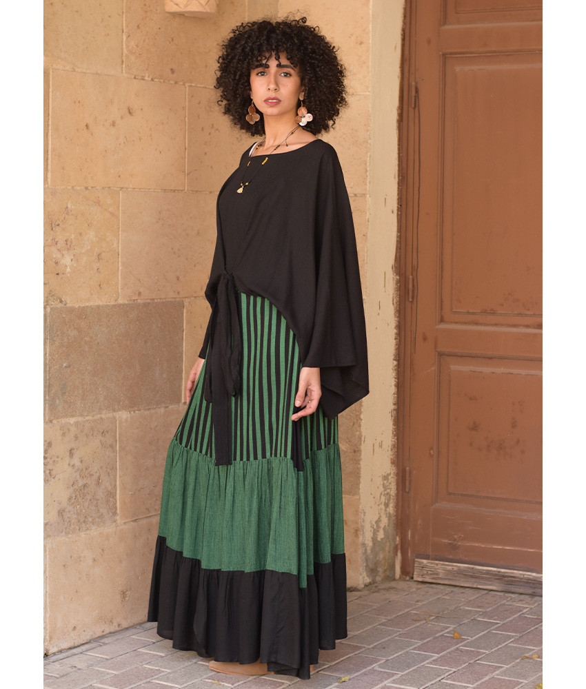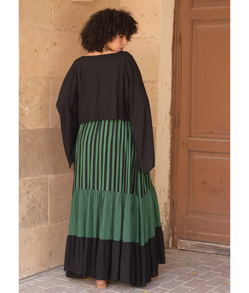 Green & Black Handwoven Ruffle Skirt – This gorgeous soft ruffle skirt is made of Viscose. It is Handwoven on traditional loom in Naqada, Upper Egypt – exclusively handmade tor us! This skirt is perfect for the summer season, it will beautifully complete your outfit adding a character, glam to your style and color to your day.