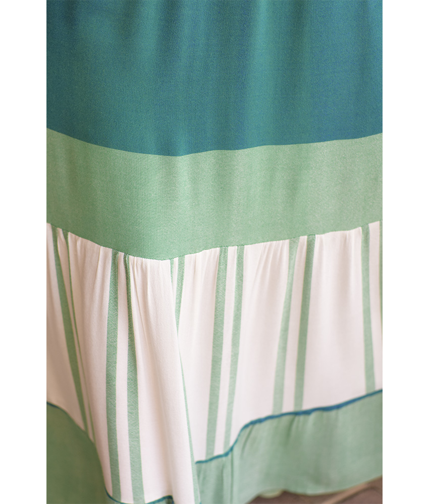 Green & White Handwoven Ruffle Skirt