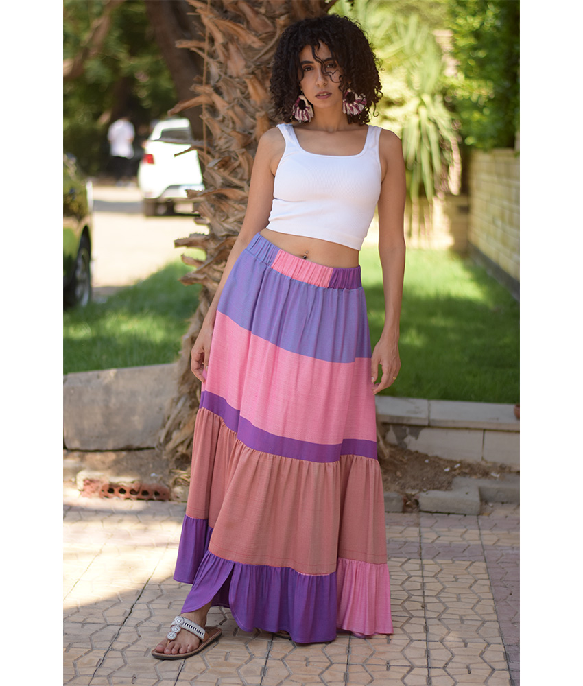 Multicolored Handwoven Ruffle Skirt – This gorgeous soft ruffle skirt is made of Viscose. It is Handwoven on traditional loom in Naqada, Upper Egypt – exclusively handmade tor us! This skirt is perfect for the summer season, it will beautifully complete your outfit adding a character, glam to your style and color to your day.