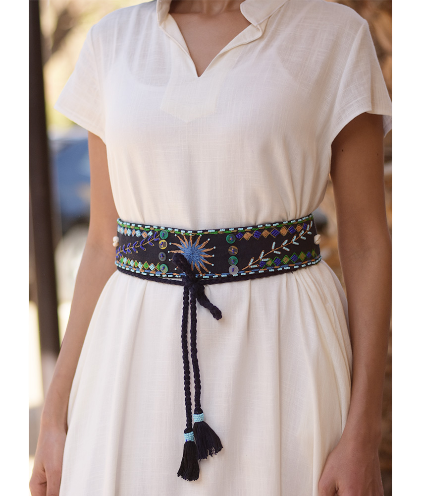 The belt is made and embellished with intricate colorful embroideries by the women of Saint Catherine. It elegantly completes your outfit whether you’re dressing up for a dinner party or a day in town. Wear it on top of a simple dress or your jeans!