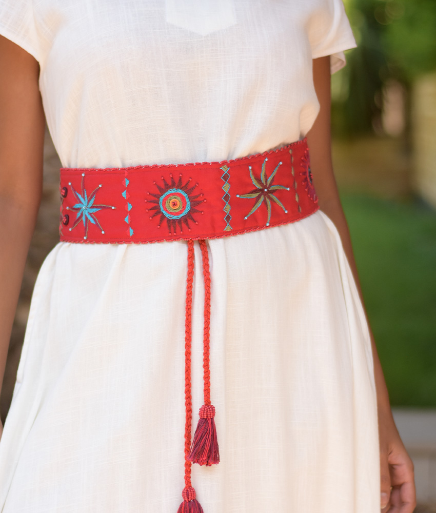 Red Saint Catherine Embroidered Wide Belt – The belt is made and embellished with intricate colorful embroideries by the women of Saint Catherine. It elegantly completes your outfit whether you’re dressing up for a dinner party or a day in town. Wear it on top of a simple dress or your jeans!