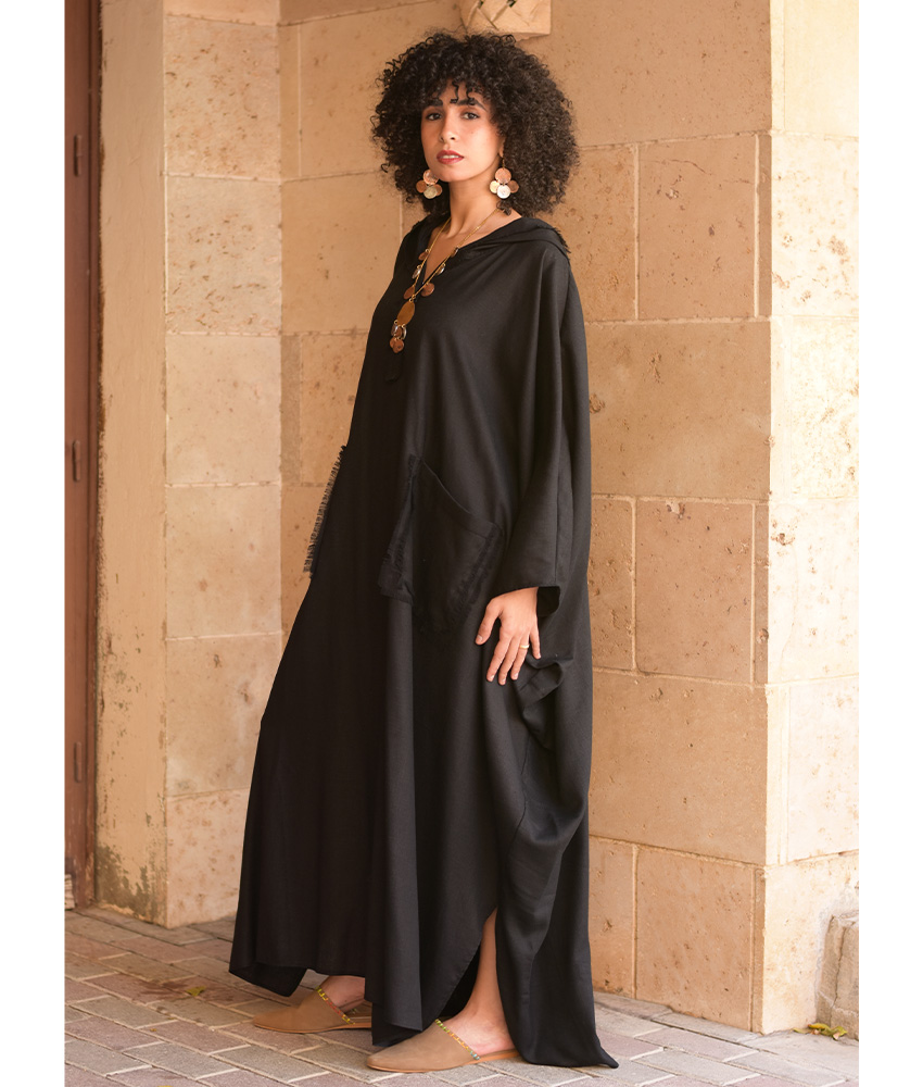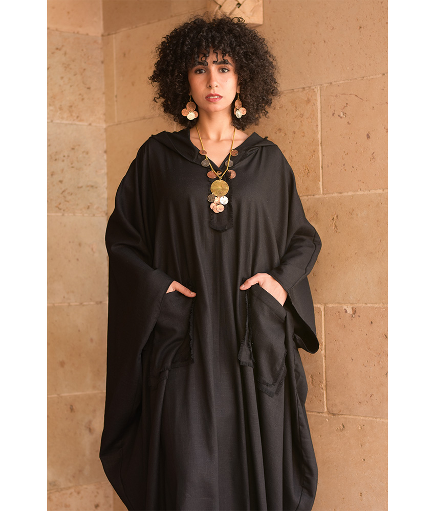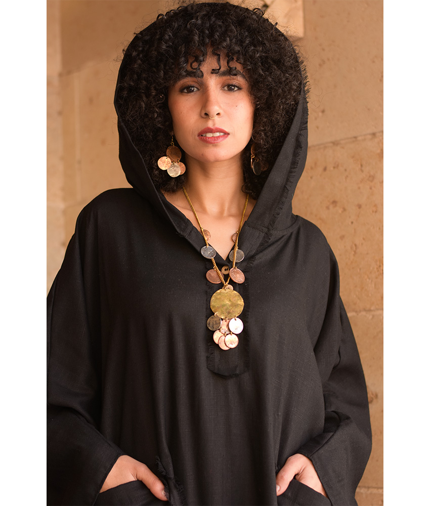 Black Linen Kaftan with Hoodie – This gorgeous kaftan is made of soft linen. You can wear this beautiful kaftan as a dress or pair it with our linen pants or your favorite jeans for a different look.
