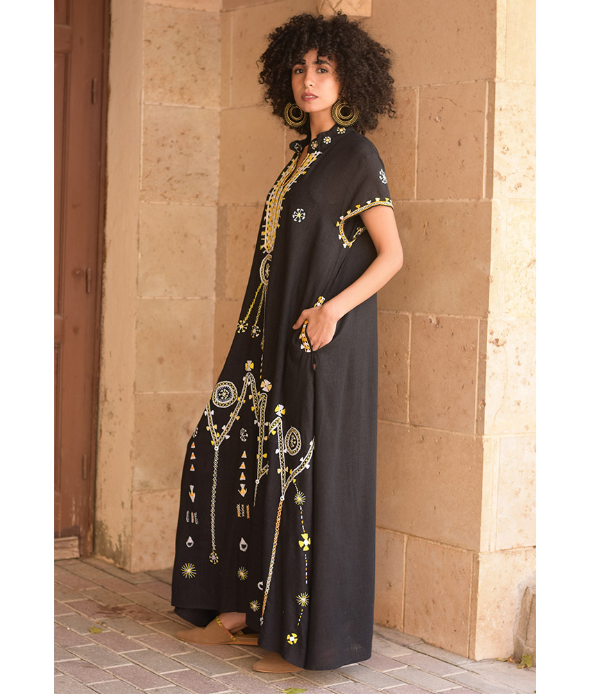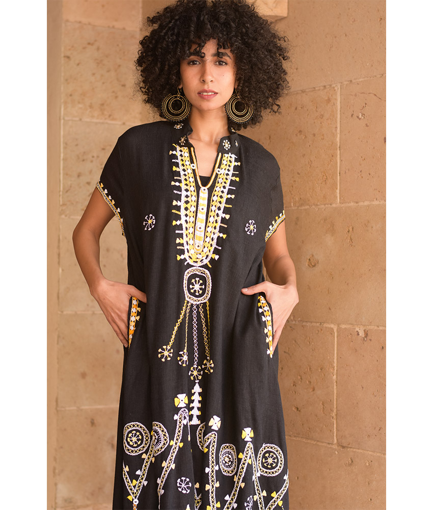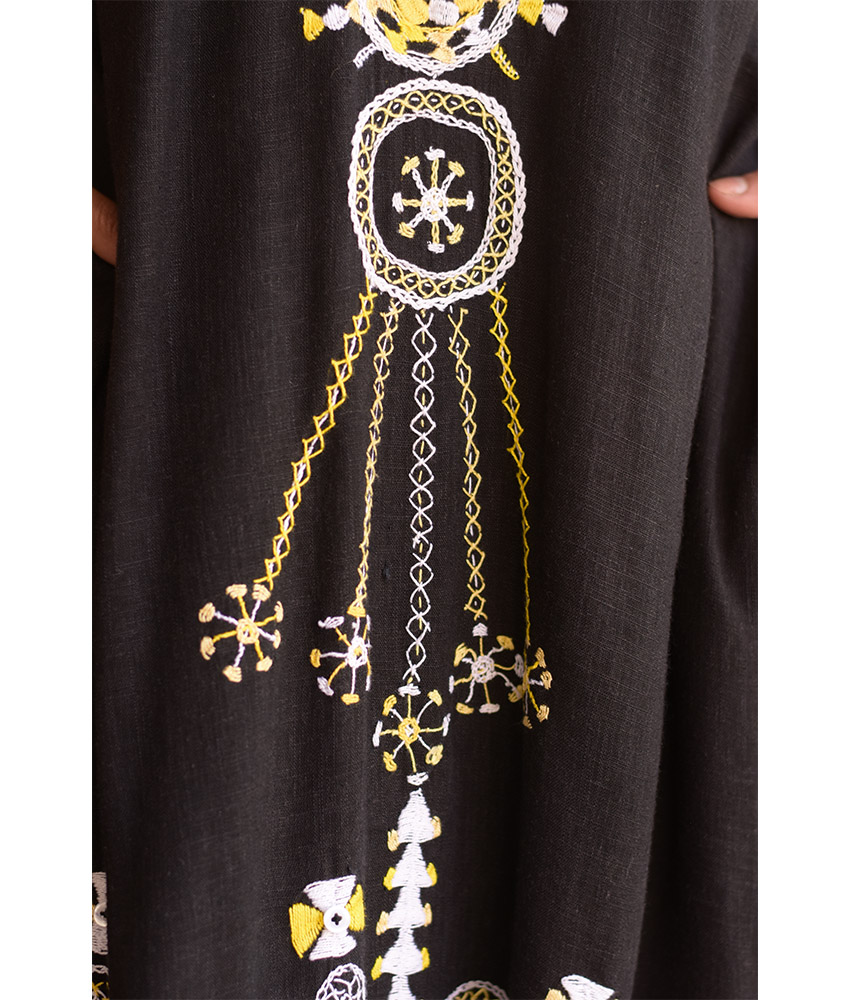 Black Siwa Embroidered Linen Japanese Dress – Fits L & XL