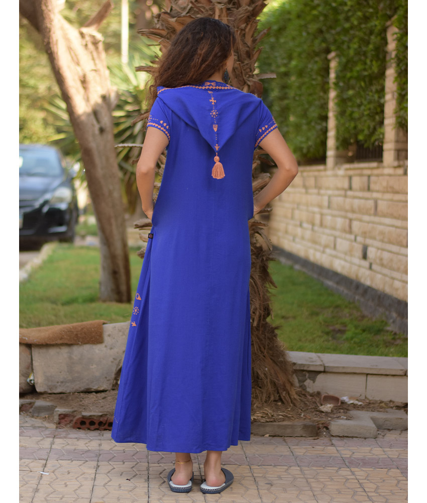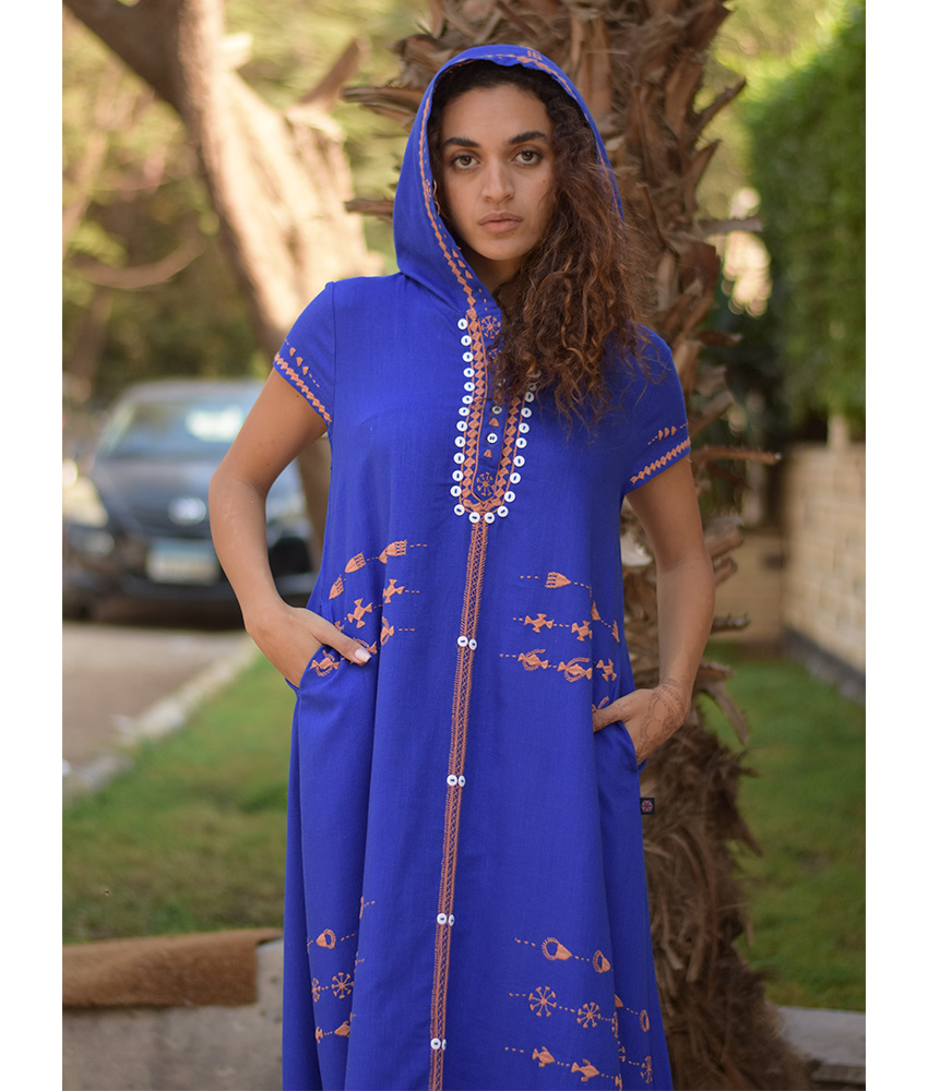 Electric Blue Siwa Embroidered Linen Dress with Hoodie