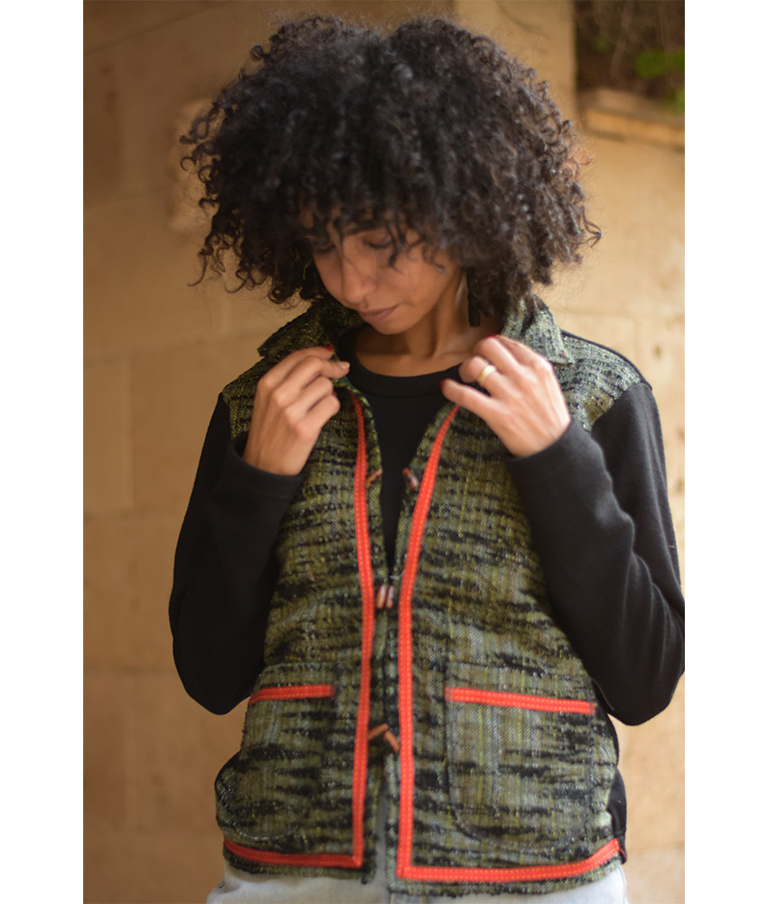 Black & Green Cropped Akhmim Loomwoven Jacket