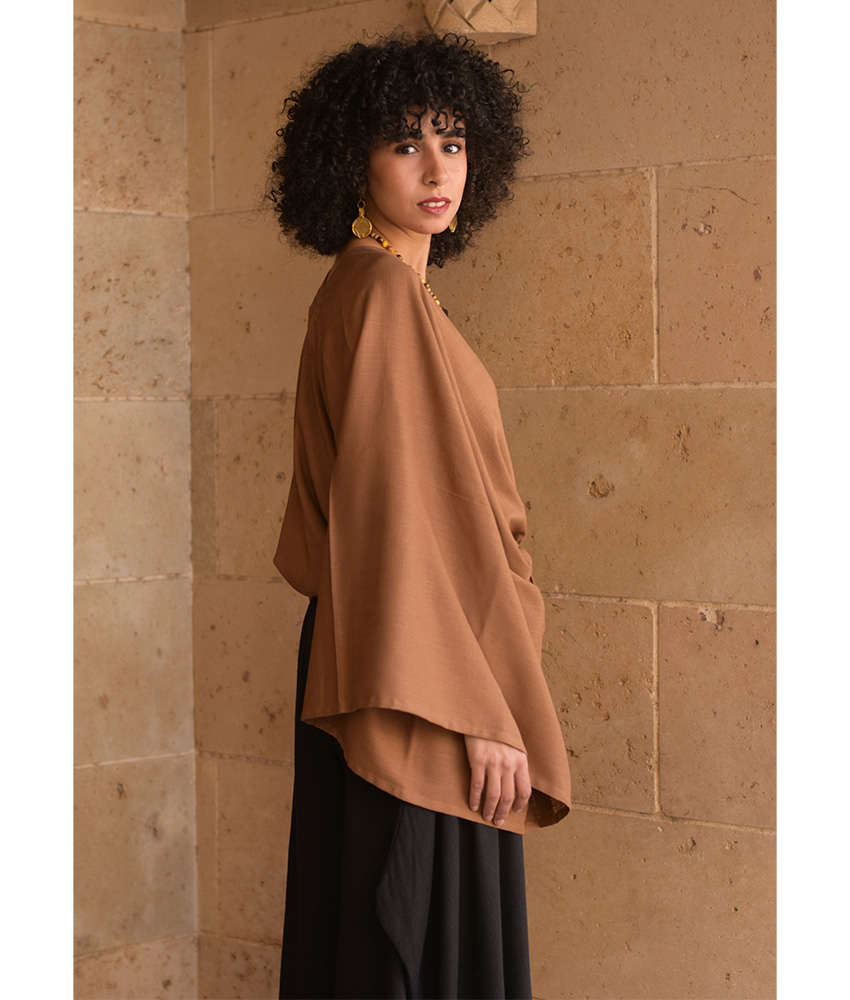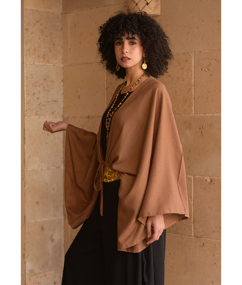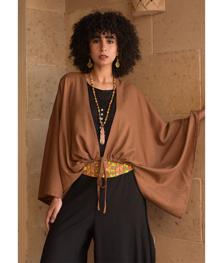 Brown Linen Bolero – This gorgeous free-size bolero is made of a linen-cotton mix. It will complete your outfit wonderfully, adding character and glam to your style while infusing color into your day.