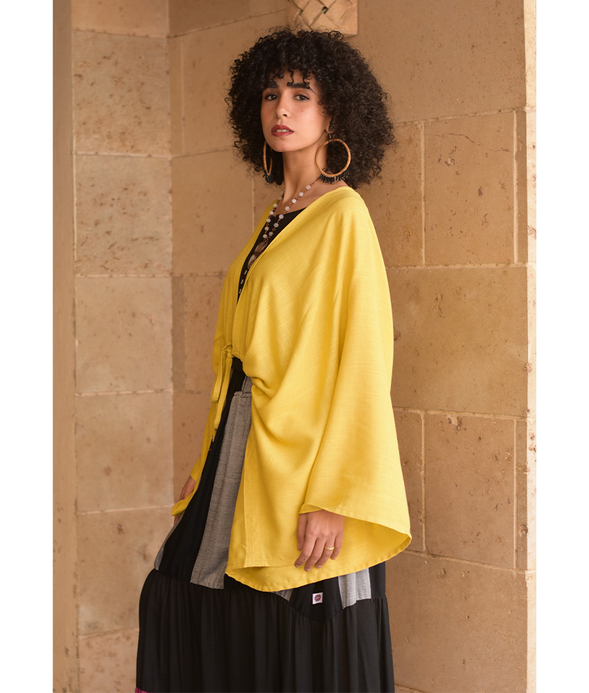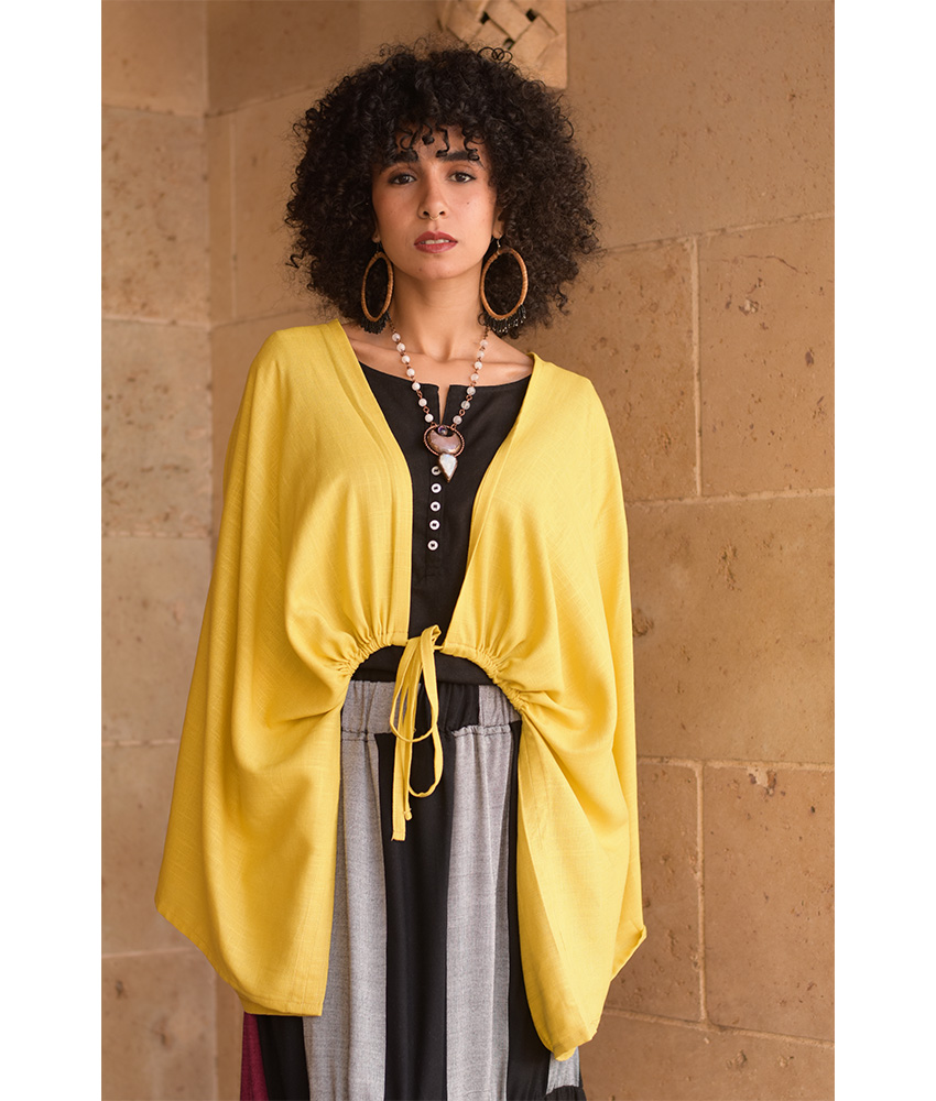 Mustard Linen Bolero – This gorgeous free-size bolero is made of a linen-cotton mix. It will complete your outfit wonderfully, adding character and glam to your style while infusing color into your day.