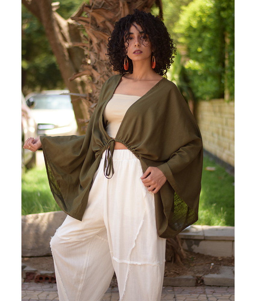 Olive Green Linen Bolero – This gorgeous free-size bolero is made of a linen-cotton mix. It will complete your outfit wonderfully, adding character and glam to your style while infusing color into your day.