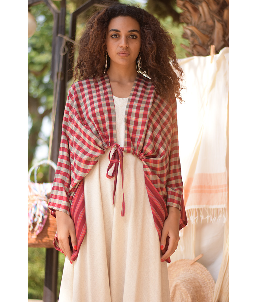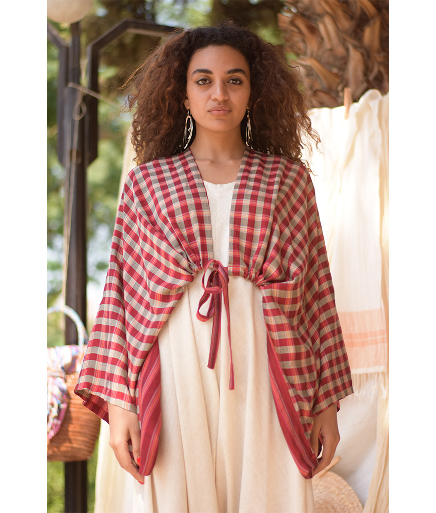 Red & Beige Viscose Bolero – This gorgeous bolero is made of Viscose. It is Handwoven on traditional loom in Naqada, Upper Egypt – exclusively handmade tor us! This bolero is perfect for the summer season, it will beautifully complete your outfit adding a character, glam to your style and color to your day.