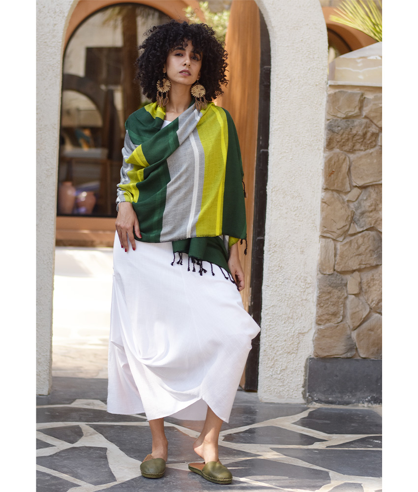 Multicolored Handwoven Viscose Shawl – This gorgeous shawl is made of viscose. Handwoven on a traditional loom in Naqada, Upper Egypt – exclusively handmade tor us!. It will beautifully complete your outfit adding character, glam to your style and color to your day!