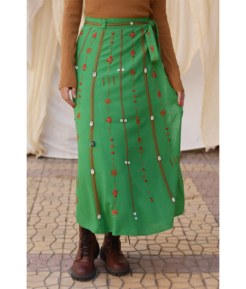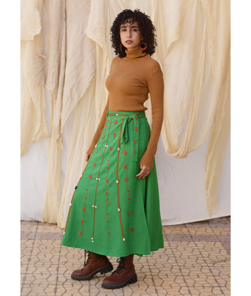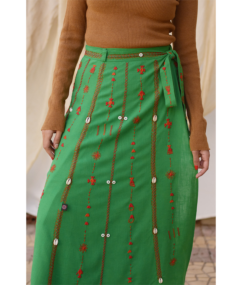 Green Siwa Embroidered Linen Wrap Skirt