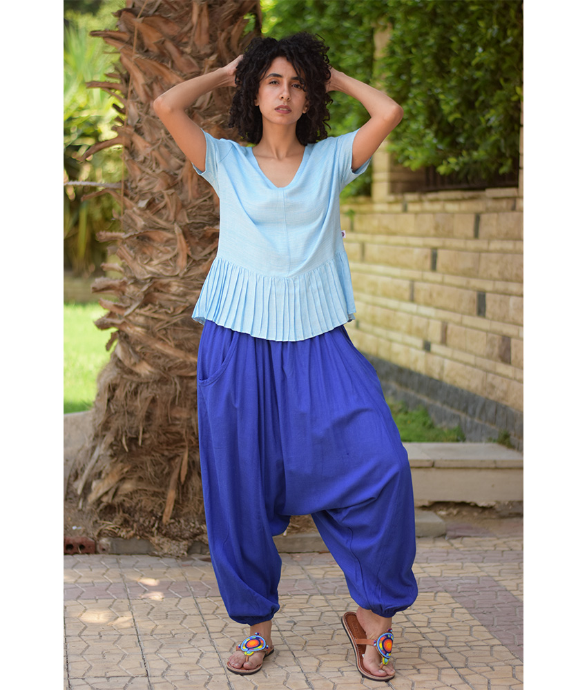 Baby Blue Handwoven Ruffle Top – This gorgeous soft ruffle top is made of Viscose. It is Handwoven on traditional loom in Naqada, Upper Egypt – exclusively handmade tor us! This top is perfect for the summer season, it will beautifully complete your outfit adding a character, glam to your style and color to your day.