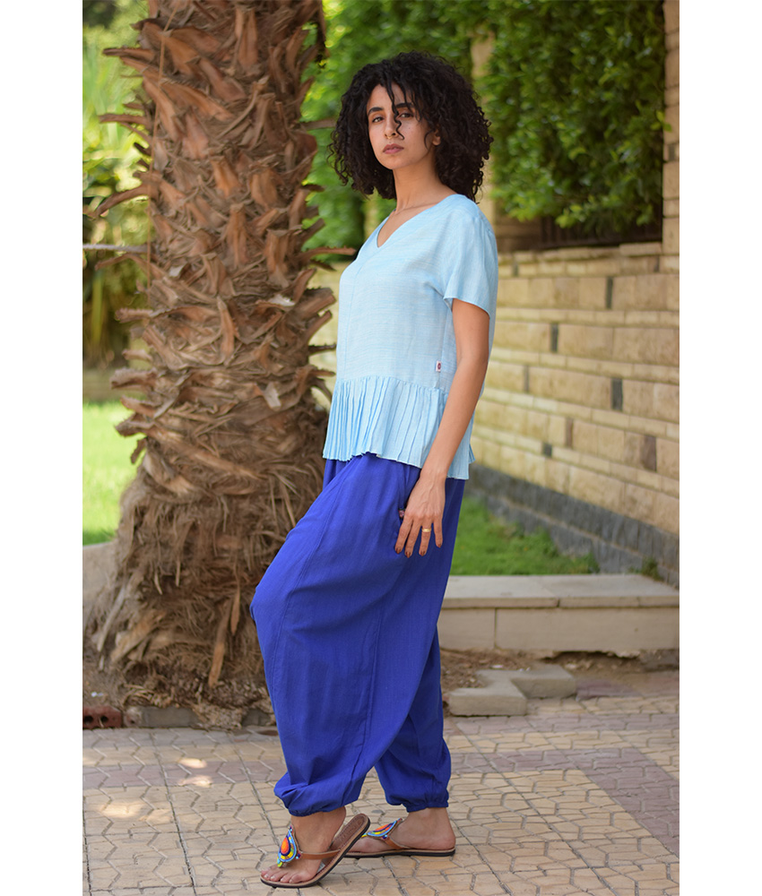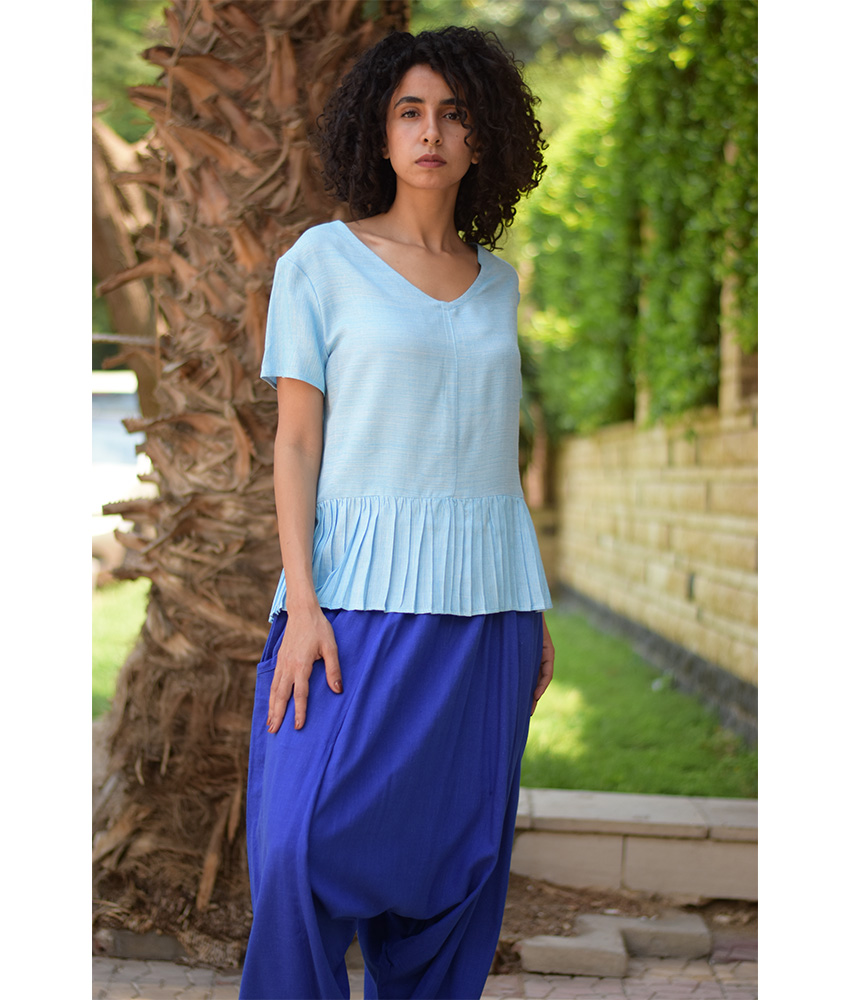 Baby Blue Handwoven Ruffle Top