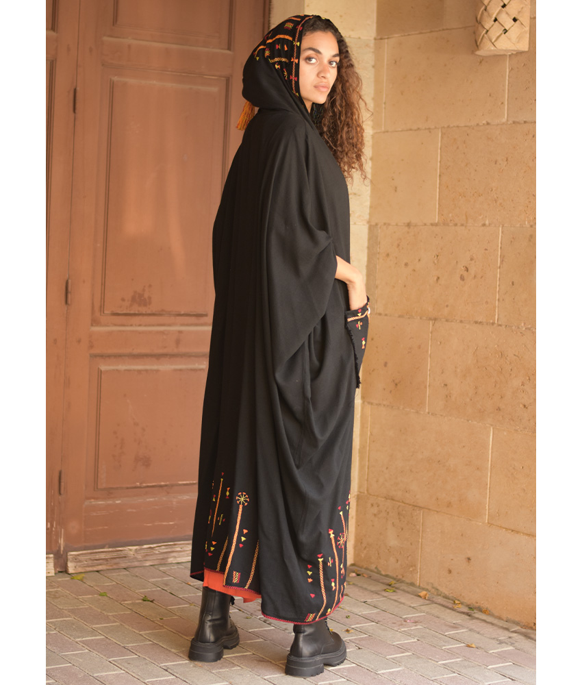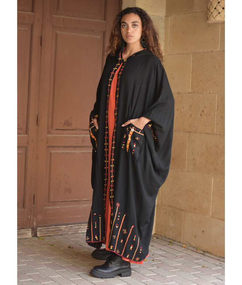 This gorgeous soft cardigan/abaya is made of linen. It is adorned with the intricate and captivating embroideries by the hands of the talented women of Siwa. Our cooperation gives them an opportunity to express themselves freely with the needle and helps preserving this beautiful traditional handicraft.